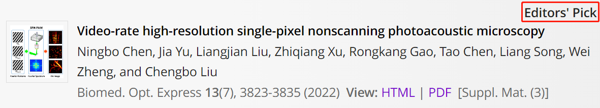 Biomedical Optics Express | 凯发k8国际高速光声显微成像技术入选期刊亮点推荐