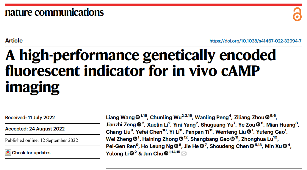 Nature Communications | 新型高性能基因编码的cAMP荧光探针及其应用