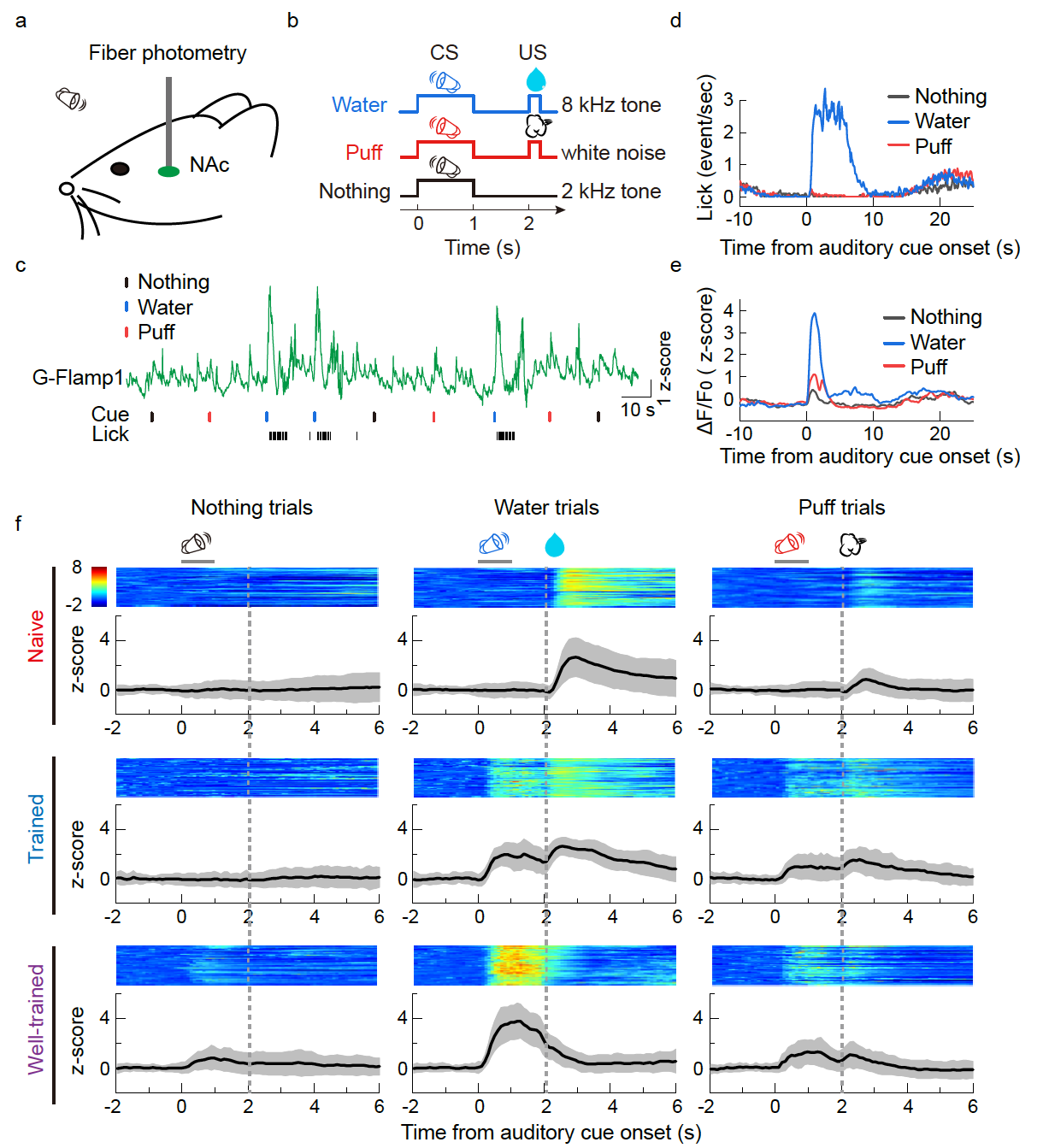 4  巴甫洛夫条件反射任务中小鼠NAc脑区cAMP信号的变化。