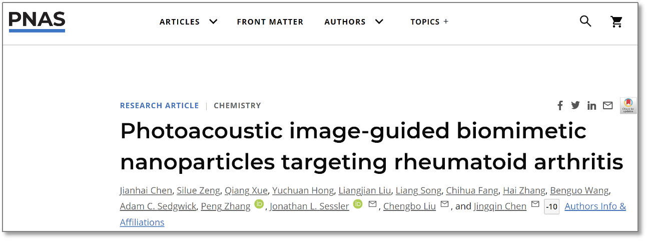 5.J. Chen et al., Tocilizumab–Conjugated Polymer Nanoparticles for NIR-II Photoacoustic-Imaging-Guided Therapy of Rheumatoid Arthritis. Adv Mater 32, 2003399 (2020).