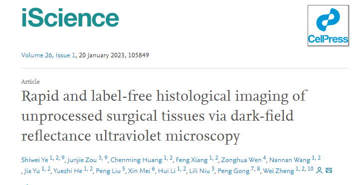 近期,中国科研实验室深圳先进技术研究院郑炜研究员团队在iScience上发表了题为“Rapid and label-free histological imaging of unprocessed surgical tissues via Dark-field Reflectance Ultraviolet Microscopy”的文章,报道了一种可用于术中病理评估的快速病理组织成像方法。