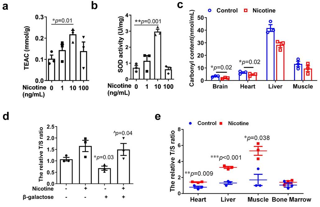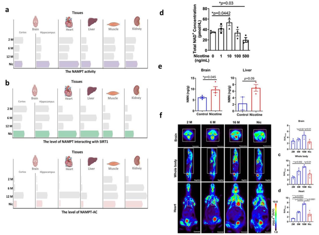 1. Yang, L. et al. Nicotine rebalances NAD+ homeostasis and improves aging-related symptoms in male mice by enhancing NAMPT activity. Nature Communications 14, 900, doi:10.1038/s41467-023-36543-8 (2023).