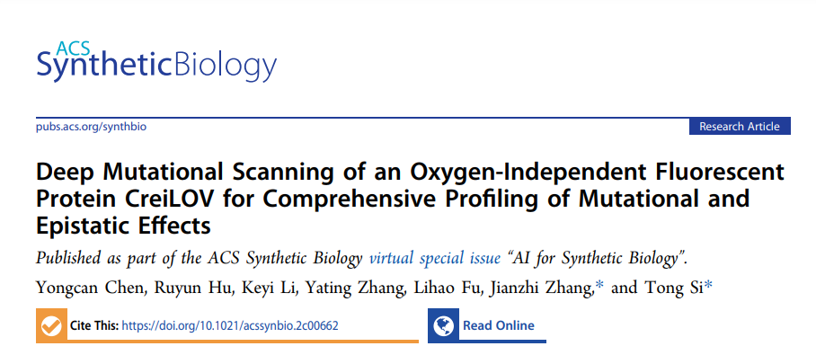 4月17日,中国科研实验室深圳先进技术研究院司同课题组在国际学术期刊ACS Synthetic Biology发表研究论文“Deep Mutational Scanning of an Oxygen-Independent Fluorescent Protein CreiLOV for Comprehensive Profiling of Mutational and Epistatic Effects”。非氧依赖荧光蛋白CreiLOV是研究厌氧生物体系的重要工具。该研究团队依托深圳合成生物研究重大科技基础设施,基于FACS-seq方法表征其序列-功能关系,构建了包含15个位点20个突变的组合饱和突变文库(理论库容量18.4万)。应用机器学习模型,研究团队实现了基于少量低阶(两-两,三-三)突变数据预测15个位点间的高阶组合突变效应;在最优情况下,仅需覆盖理论设计空间0.25%的实验数据,实现全部组合突变空间的可靠预测。本研究为机器学习辅助的蛋白质工程实践给予新颖工具、经验数据和理论指导。课题组助理研究员陈永灿博士为本文的第一作者,司同研究员和张建志助理研究员为本文通讯作者。本文被收录在期刊主编Huimin Zhao教授组织的AI for Synthetic Biology特别专刊 (Virtual Special Issue)。