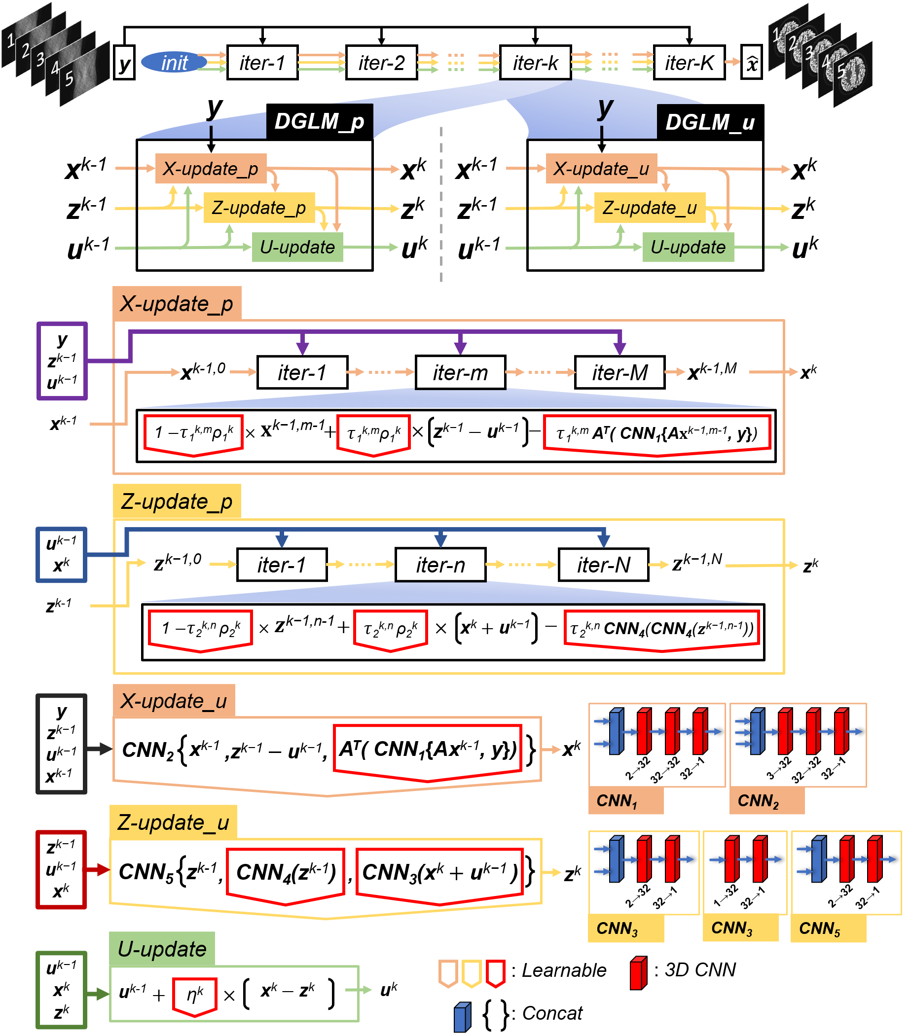 现有研究表明,儿童对于辐射剂量的敏感程度要远远高于成人,而且儿童在PET扫描时更容易由于运动导致重建图像出现伪影,因此低剂量快速PET成像在临床上具有重要意义。基于此,团队研发了一种基于深度学习的深度泛化PET重建模型(图1)。该模型顺利获得隐式学习来同时优化数据保真项和正则化项,能够显著改善由系统误差、随机散射和背景噪声等引起的原始信号畸变。实验结果表明,该模型在PET重建图像质量上明显优于现有深度学习和传统迭代方法(图2-图4)。