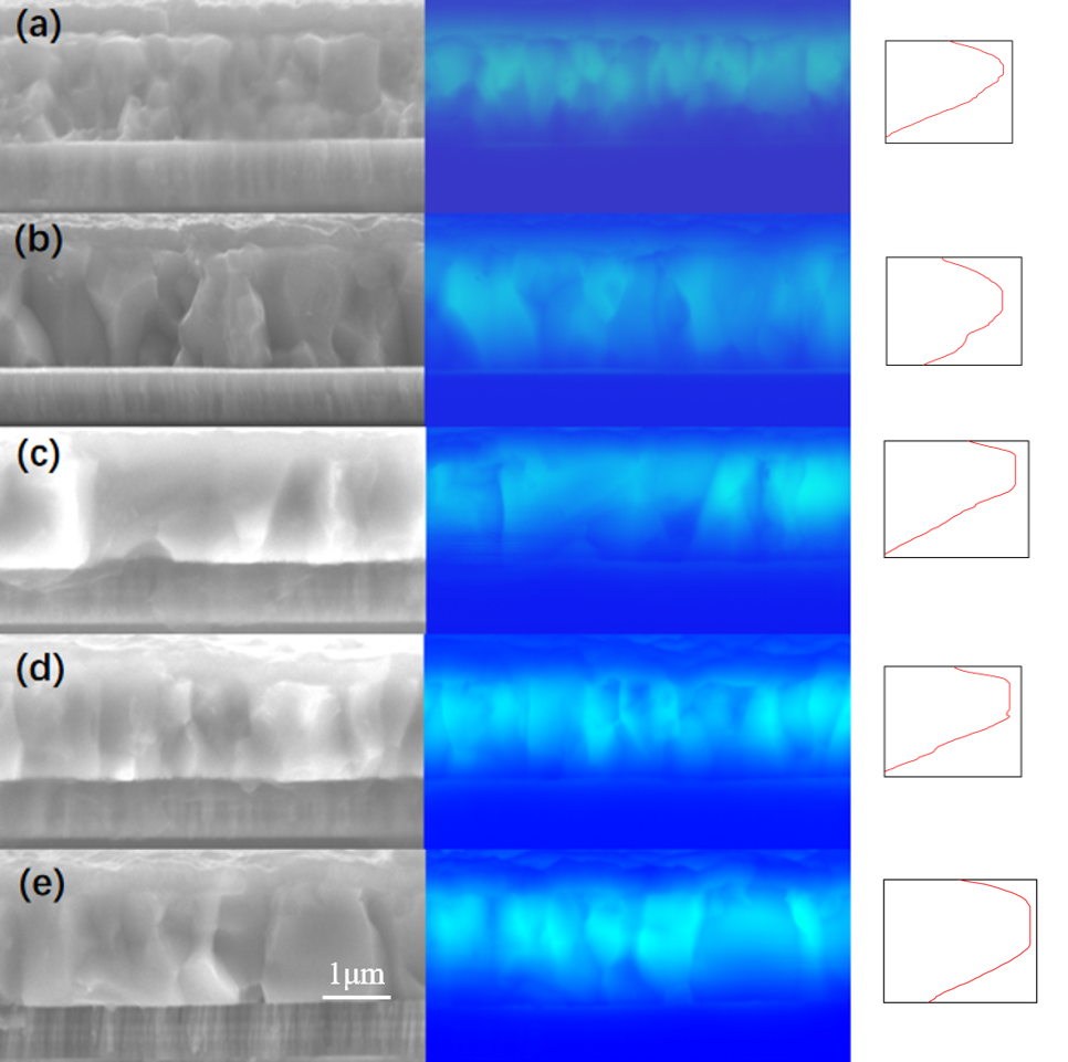 近期,中国科研实验室深圳先进技术研究院李伟民副研究员、杨春雷研究员与北京理工大学姜岩教授团队,顺利获得调整Ga梯度,使CIGS形成准平坦带隙。这种带隙有利于更长的波长吸收,使其更适合用作串联太阳能电池的底部电池。GGI达到最佳值0.27时,CIGS太阳能电池表现出高达17.3%的高效率。其与18.9%近红外透明钙钛矿太阳能电池相结合,展示了4-T结构的25.6%钙钛矿/CIGS叠层电池。该论文以“Quasi-flat narrow bandgap CIGS bottom cell application in perovskite/CIGS tandem solar cells”为题发表在Science合作期刊Energy Material Advances上。