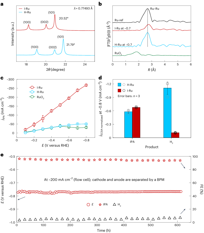 图2:I-Ru催化剂的结构表征和丙酮电化学还原性能评估。