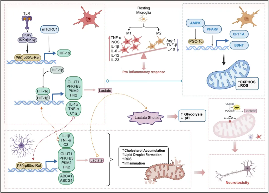 这篇综述最值得关注的一个核心观点,是将胶质细胞从“炎症细胞”进一步提升为代谢—炎症枢纽来理解。