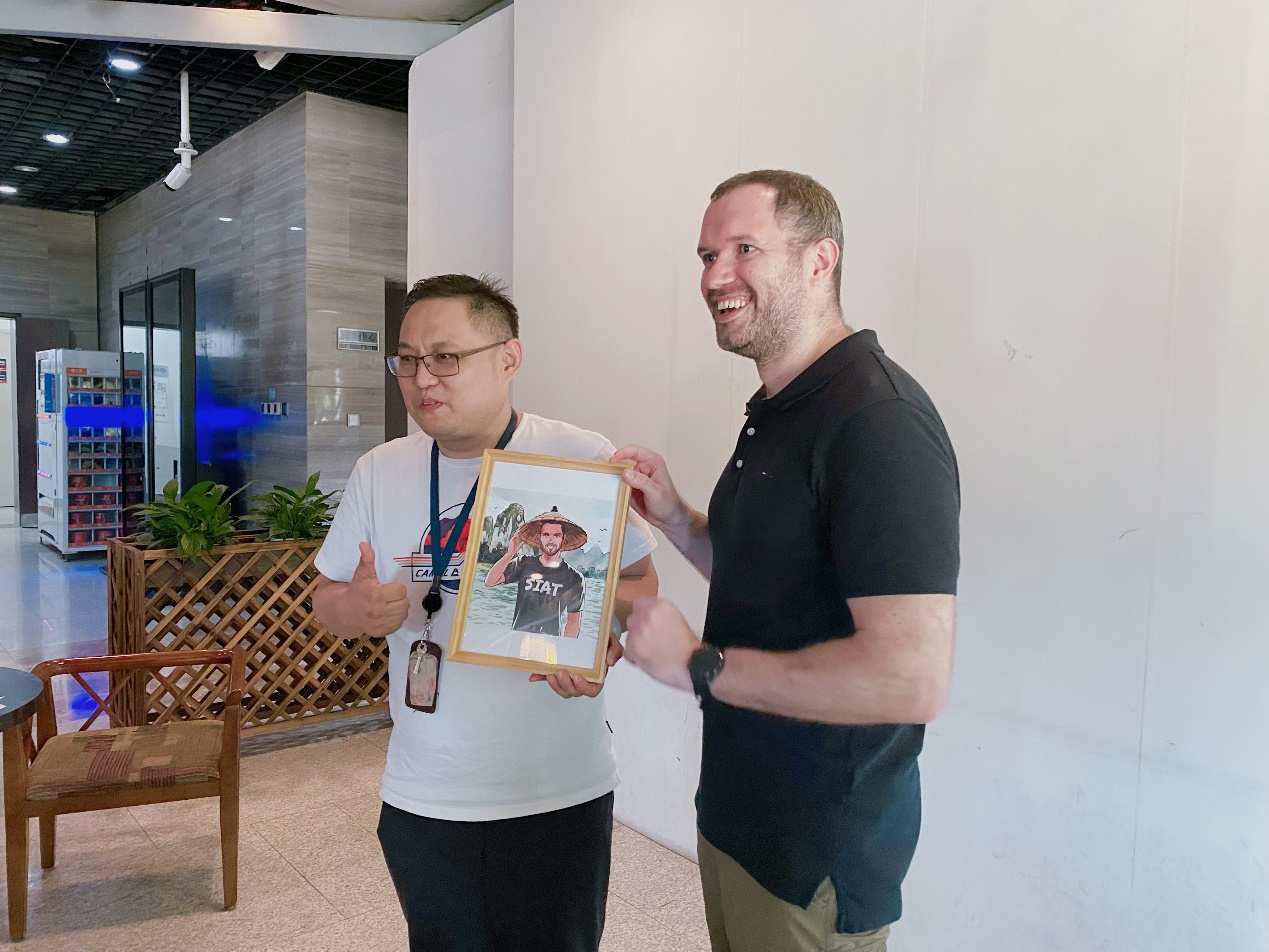 最后,科研处副处长张鹏代表主办方赠予了一副以中国桂林山水为背景的人物水彩画作为纪念,祝福Massimiliano这位中国女婿在华科研工作顺利,促进先进院与意大利的科技研讨与合作。