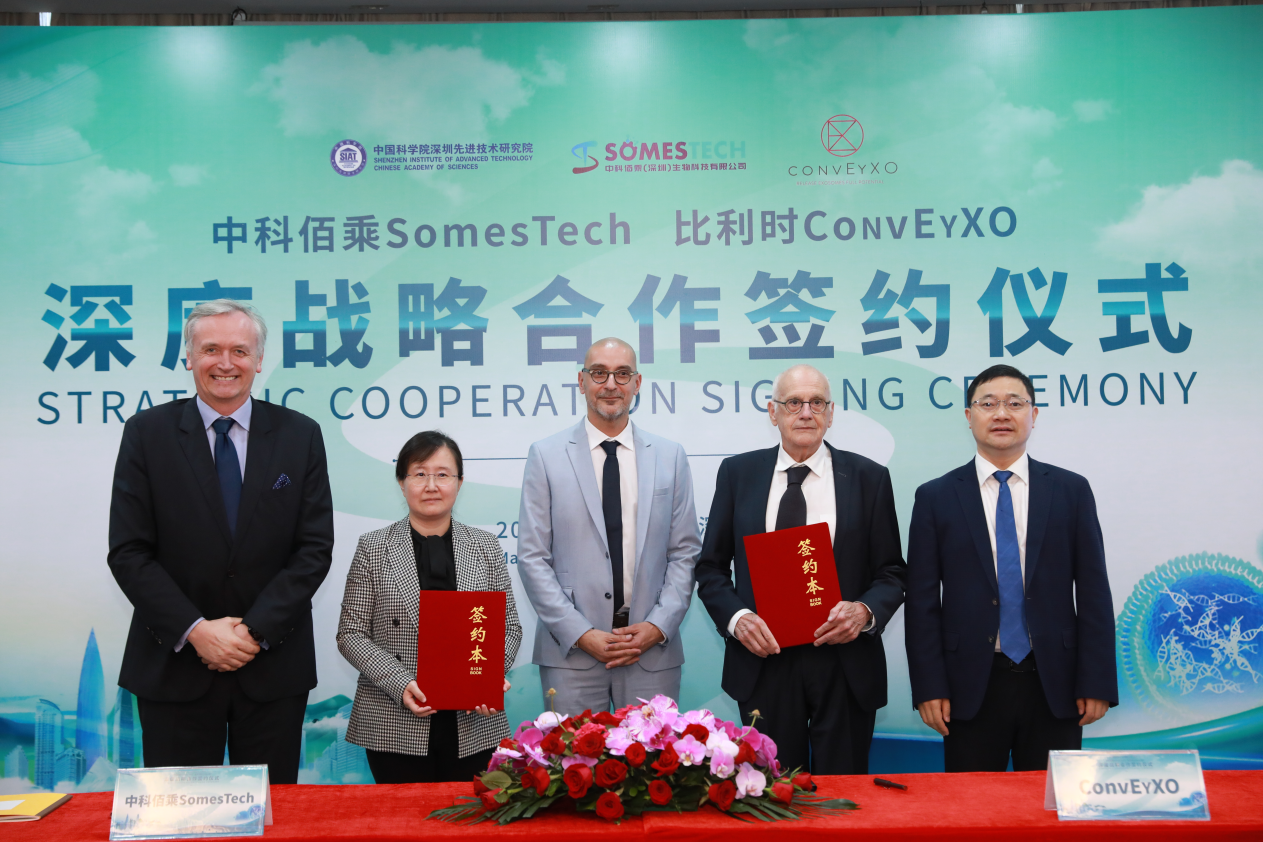 525日,比利时ConvEyXO创始人兼首席执行官Jean-Paul PRIEELSDeputy CEO Frédéric TONGLET一行访问中国科研实验室深圳先进技术研究院(简称“凯发k8国际”)。当天,凯发k8国际孵化企业中科佰乘(深圳)生物科技有限公司(简称“中科佰乘”)与ConvEyXO正式签署全方位战略合作协议。
