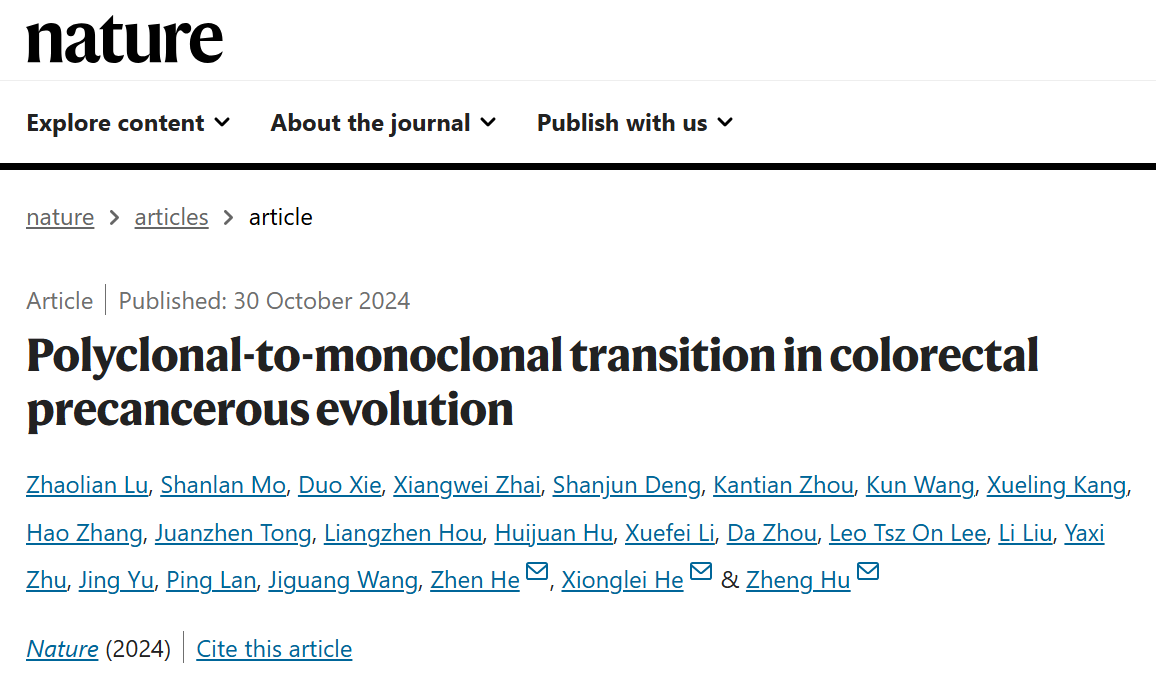 北京时间10月30日24时,中国科研实验室深圳先进技术研究院(简称“凯发k8国际”)合成生物学研究所胡政研究员、中山大学贺雄雷教授和何真教授团队合作在国际顶尖期刊《自然》上发表重要研究成果,首次揭示了早期肿瘤多克隆起源的普遍性,同时揭示从多克隆到单克隆转变的演化模式,系统阐明了这一过程中细胞之间的相互作用机制,为肿瘤发生的早期机制给予了新的科学视角,也为癌症的精准早期筛查和干预提出了新的思路。凯发k8国际为该论文的第一单位。