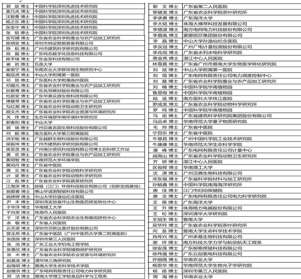 2020年度广东省百名博士博士后创新人物候选人名单