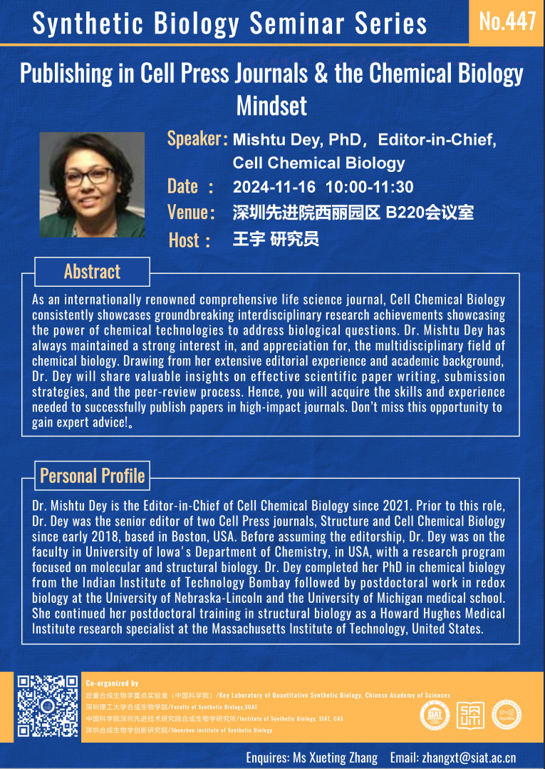 【2024年11月16日  合成所/合成生物学院】Publishing in Cell Press Journals & the Chemical Biology Mindset