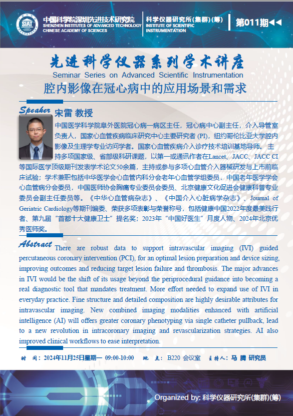 【2024年11月25日  科学仪器研究所(集群)】腔内影像在冠心病中的应用场景和需求