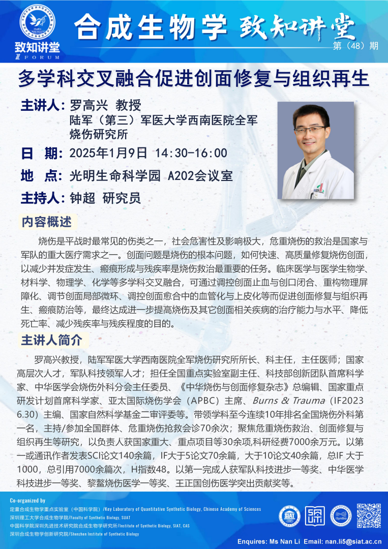 【2025年1月9日  深圳合成生物学创新研究院/合成生物学研究所/合成生物学院】多学科交叉融合促进创面修复与组织再生