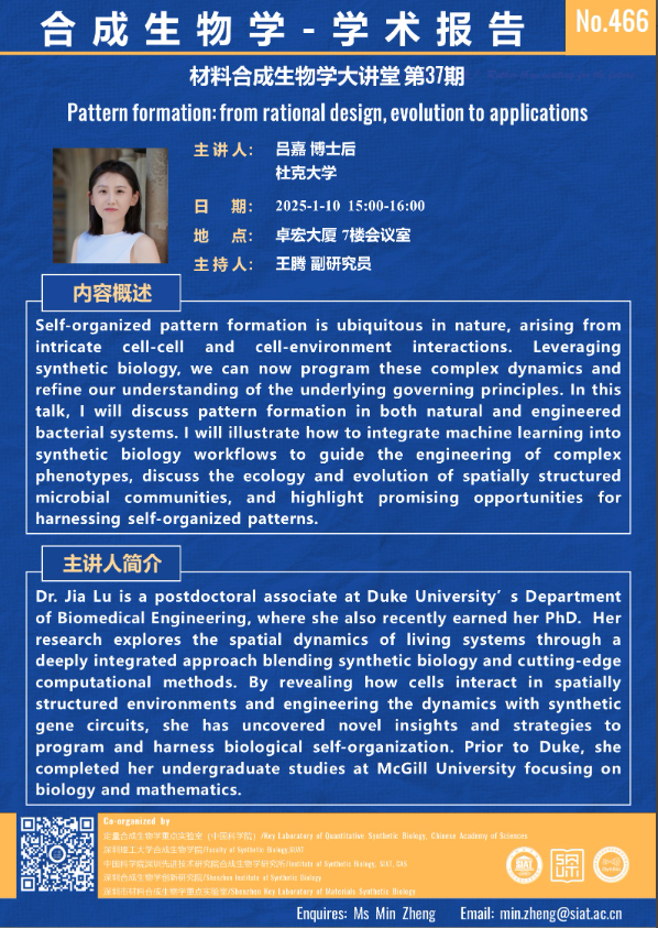 【2025年1月10日  合成所/合成生物学院】Pattern formation: from rational design, evolution to applications