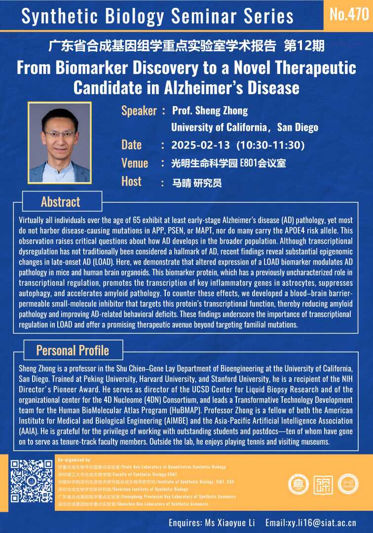 【2025年2月13日  合成所/合成生物学院】From Biomarker Discovery to a Novel Therapeutic Candidate in Alzheimer's Disease