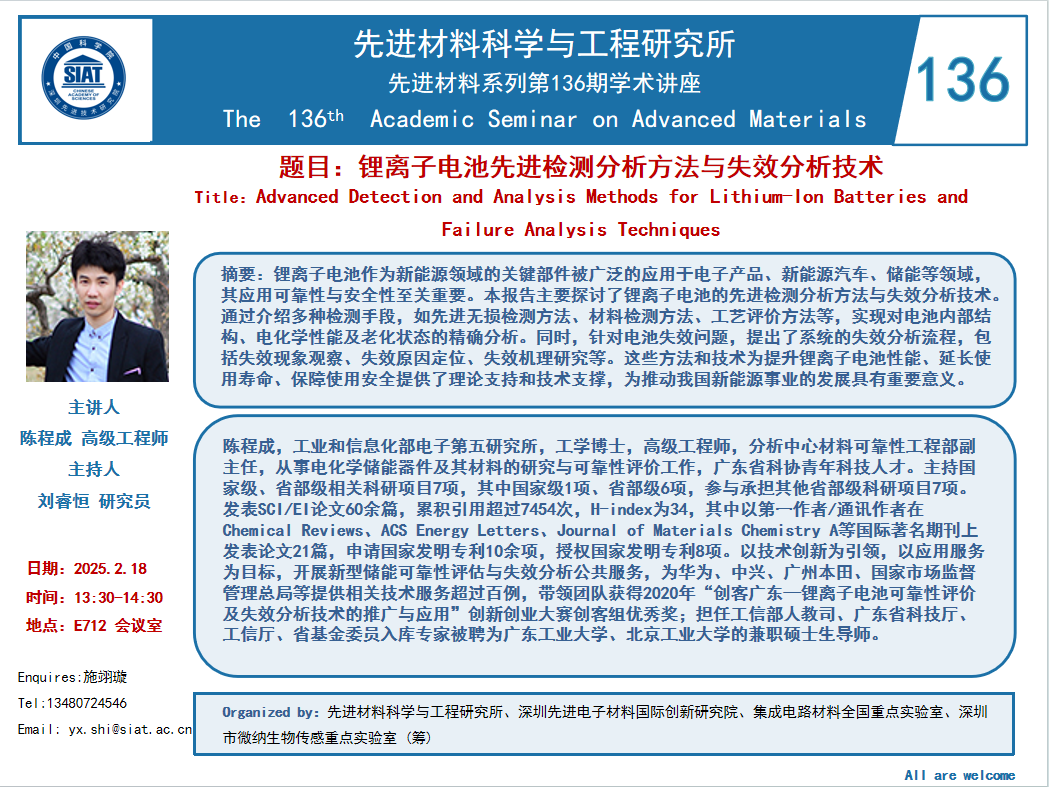 【2025年2月18日  材料所】锂离子电池先进检测分析方法与失效分析技术