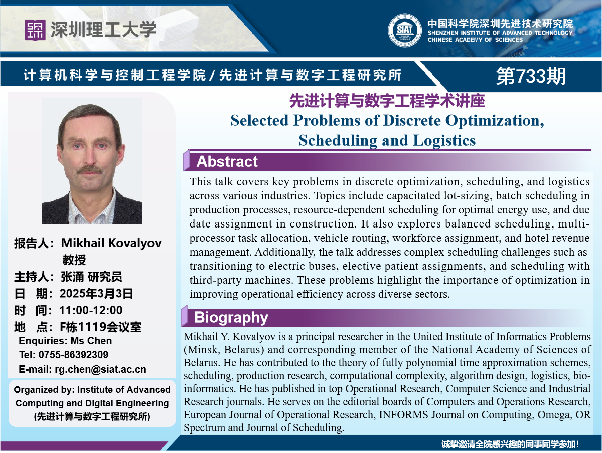 【2025年3月3日  数字所/计算机学院】Selected Problems of Discrete Optimization, Scheduling and Logistics