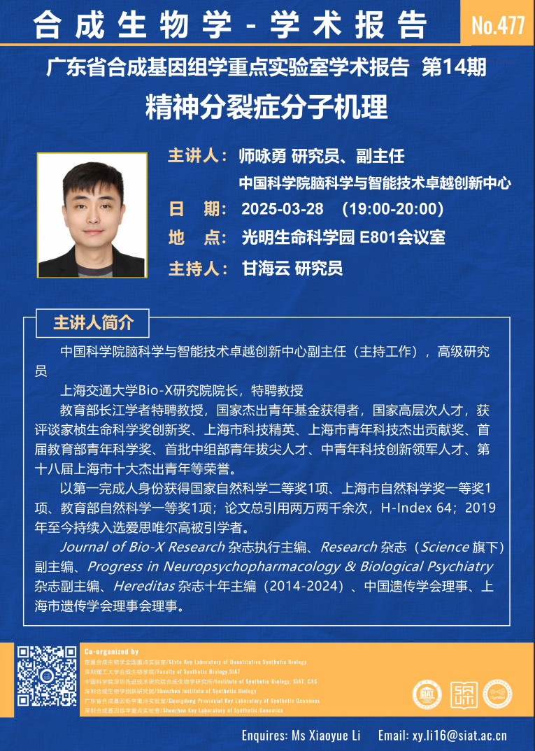 【2025年3月28日  合成所/合成生物学院】精神分裂症分子机理