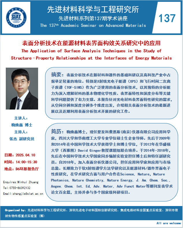 【2025年4月10日  先进材料科学与工程研究所】表面分析技术在能源材料表界面构效关系研究中的应用