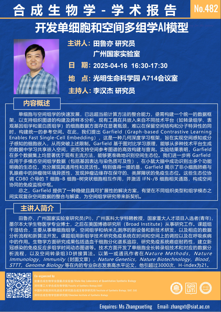 【2025年4月16日  合成所/合成生物学院】开发单细胞和空间多组学AI模型