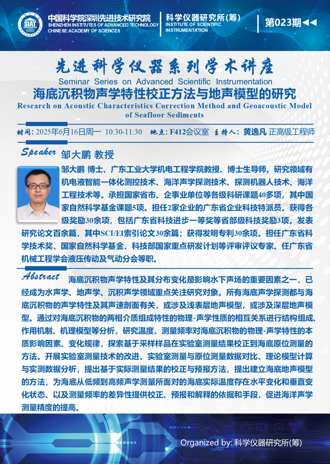 【2025年6月16日  科学仪器研究所(筹)】海底沉积物声学特性校正方法与地声模型的研究