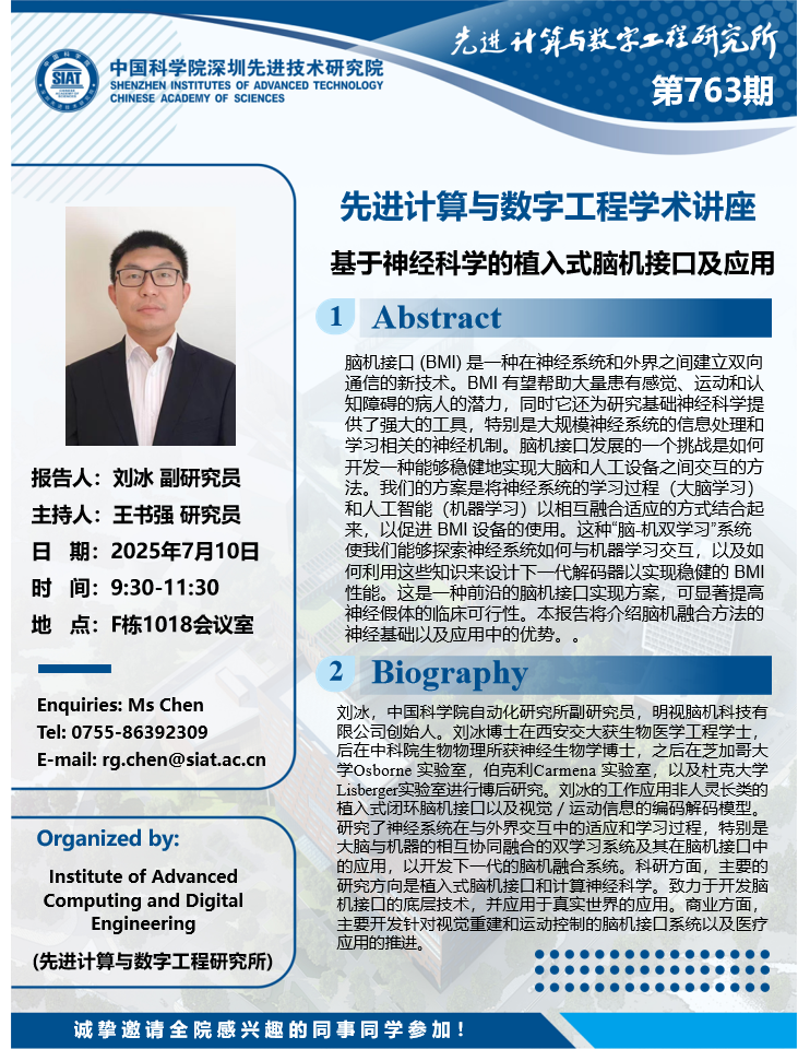 【2025年7月10日  数字所/计算机学院】基于神经科学的植入式脑机接口及应用